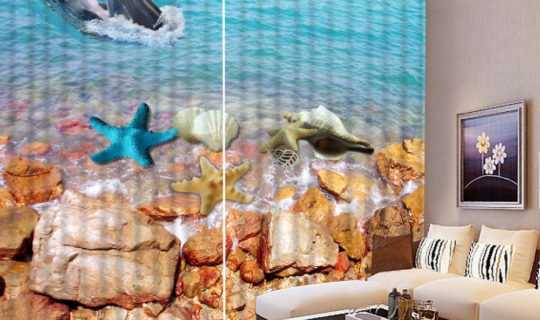 Нижний край шторок утяжеляется бусинами или специальным шнуром, вшитым в кромку. Если занавеси во всю стену используются в спальне, их можно сделать длиннее нужного размера на 20 см, и тогда он будет живописно падать на пол. Материал подбирается в тон стен или контрастного цвета, в зависимости от дизайна комнаты.
