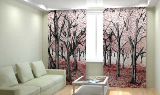 Любую идею вы можете взять за основу будущего оформления своего зала, однако, не забудьте определить степень освещенности помещения и подобрать материал для штор уже с учётом этого параметра.