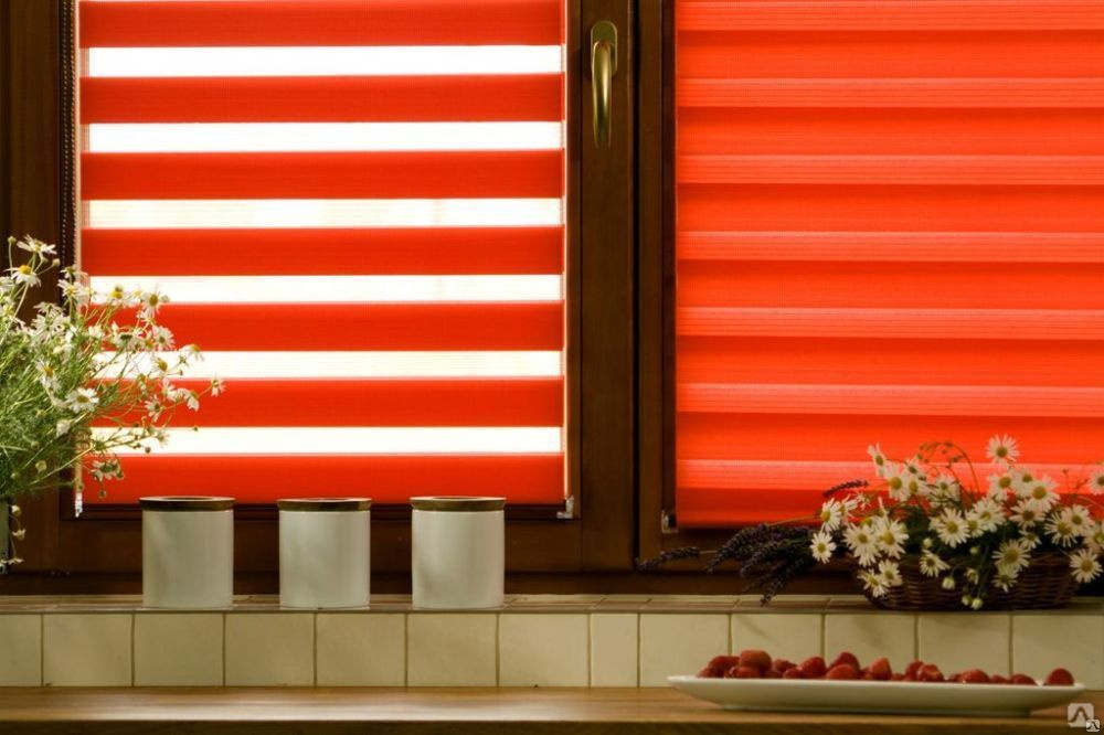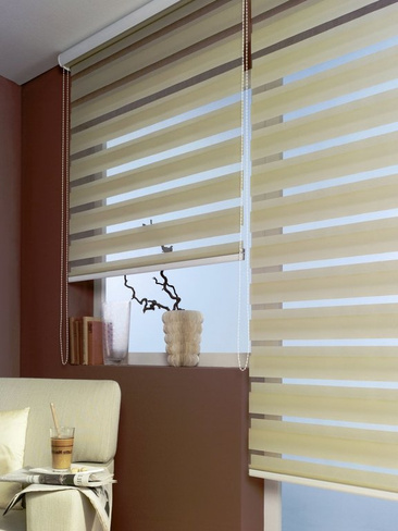 Система День-Ночь может быть выполнена в рулонных жалюзи или жалюзи — плиссе.