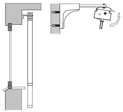 Монтаж кронштейнов к стене осуществляется саморезами. Крепление защёлки к кронштейну — винтом и гайкой.