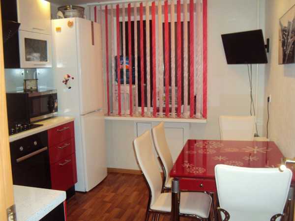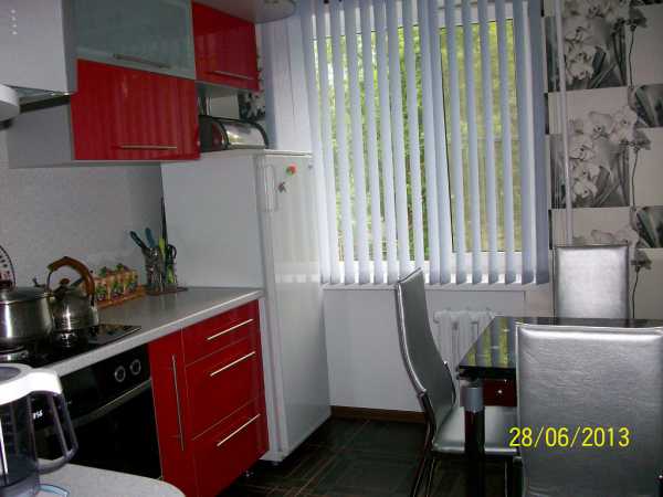 Красные жалюзи являются сильной доминантой. В кухне они должны сочетаться еще с какими-нибудь элементами интерьера красного цвета: например, с фартуком или с текстилем.