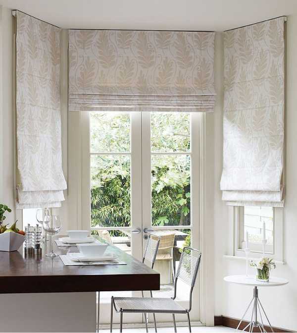 Римские шторы многие ошибочно путают с жалюзи. Что-то общее действительно есть — при складывании они образовывают симметричные складки. Однако для кухни это не лучший выбор — ткань может впитывать запахи готовящейся пищи.