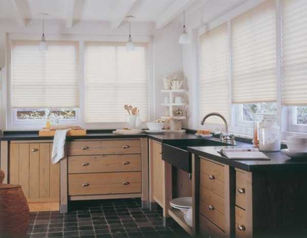 Жалюзи-плиссе в виде гармошки хорошо подходят для кухонных арок и больших окон.