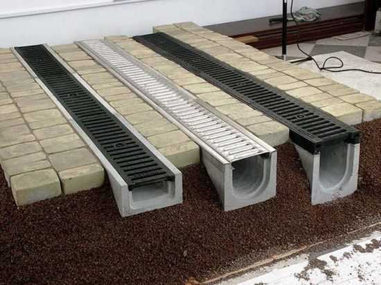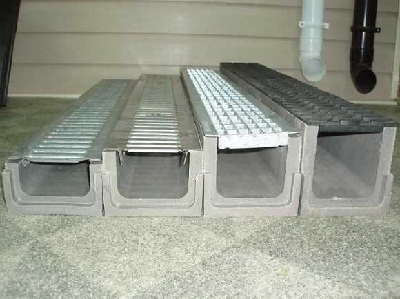 Если участок находится в проблемной зоне, например, неровная поверхность, то необходимо устанавливать специальные бетонные лотки. Такие сооружения предотвращают образование водных застоев. Конструкция из бетонных желобов и каналов направляет стоки в общую канализацию.