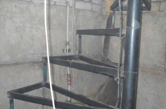 - Чтобы спиралевидная конструкция не пробила основание пола, рекомендуется изготовить бетонную подушку — небольшой квадрат. С помощью анкеров производится дополнительное закрепление.