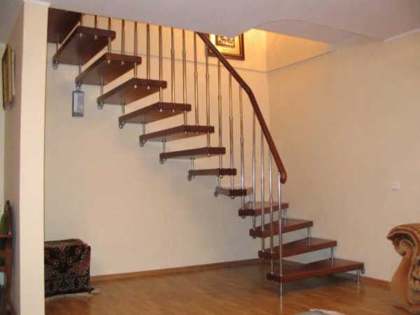 Деревянная поворотная конструкция предполагает закрепление всей системы к несущей стене, а перила монтируются с наружной стороны. Иногда в особняках можно увидеть лестницы, которые и вовсе не закреплены к стене. С точки зрения дизайнеров, конструкция выглядит довольно-таки необычно и привлекательно, но усложняется удобство перемещения, поскольку отсутствуют перила.