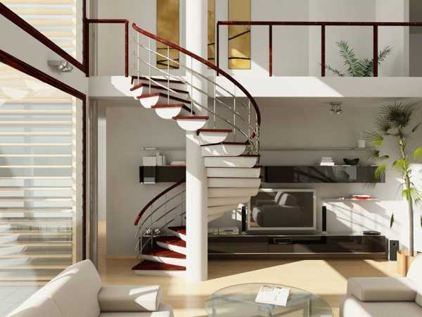 Возникает сложность транспортировки крупной бытовой техники и мебели по винтовой лестнице на второй этаж.- Деревянная спиралевидная конструкция в отличие от металлической смотрится привлекательнее, но, как правило, деревянная лестница не отличается высоким сроком эксплуатации.