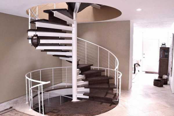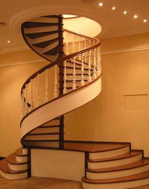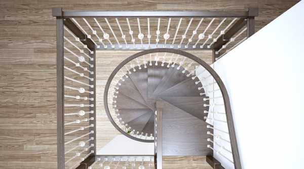 Винтовая лестница это конструкция, в которой нет межмаршевых пролетов, и есть центральный опорный столб, служащий основанием для ступенек. Она представляет собой общий каскад ступеней, расположенных по кругу, по спирали.