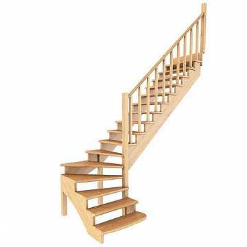 Такие конструкции считаются разновидностью спиралевидных лестниц. Они могут полностью состоять из забежных ступенек или частично. Есть такие модификации поворотных моделей: