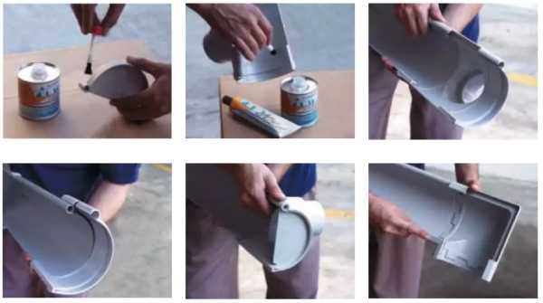 - После нанесения клея и соединения элементов желоба их нельзя смещать или трогать. Если процесс затвердевания нарушить, то дальнейшее склеивание не обеспечит необходимую герметичность и прочность.