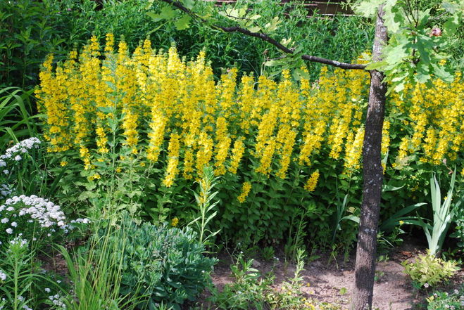 Этот прямостоячий многолетник цветет звездообразными эффектными желтыми цветами в течение всего лета. Каждый вертикальный ветвящийся стебель производит сотни этих желтых красавиц в виде пирамидальных соцветий, привлекающих как бабочек, так и людей.