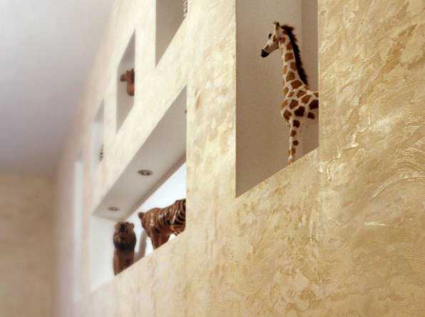 - В качестве фрагментарного украшения одной стены может послужить цветок или какой-либо узор, выполненные из штукатурки другого оттенка. В принципе, выполнение этой задачи может быть простым, если кто-то из родных или близких друзей обладает художественными навыками.