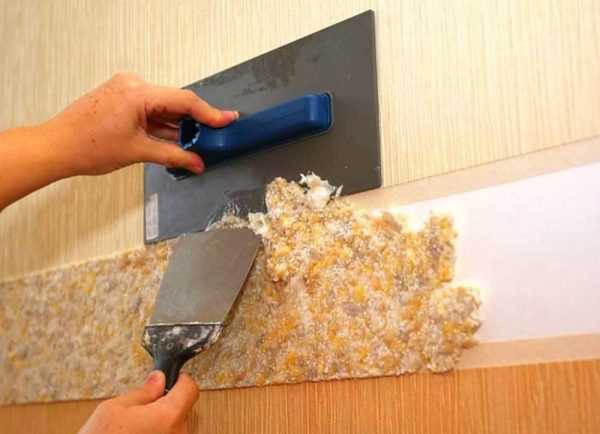 - Как можно тщательней зачистить всю поверхность от предыдущих покрытий и обработать от загрязнений. Все глубокие трещины и глубокие выбоины нужно заштукатурить, мелкие недостатки выправят обои.