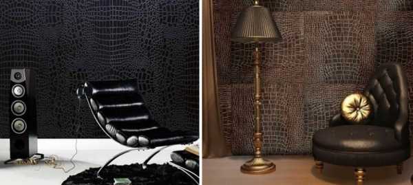 Благодаря современным технологиям появляются новые фактуры. Роскошно выглядит отделка жидкими обоями с фактурой «под кожу». Глянцевая «змеиная» кожа украсит любой дорогой интерьер «ар-деко». Создать этот эффект довольно просто. Выравнивается, очищается стена, наносится смесь и выполняется декоративный рисунок при помощи специального валика или резинового штампа.