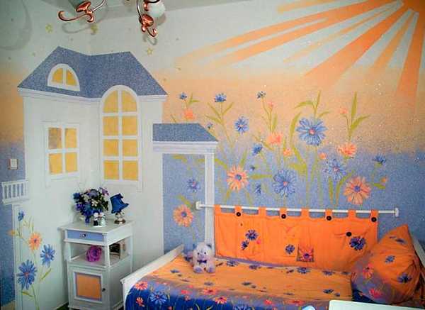 Рисунок жидкими обоями — фото в интерьере детской
