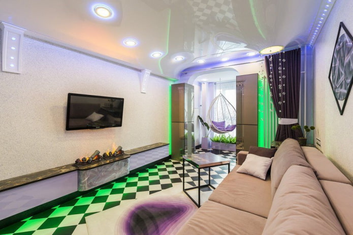 Особая функциональность покрытия может быть несколько навязчива, но если подойти к этому вопросу с фантазией и использовать такую добавку не по всей площади стен, а только на некоторых участках, например, ближе к потолку, то вы получите оригинальный световой эффект.