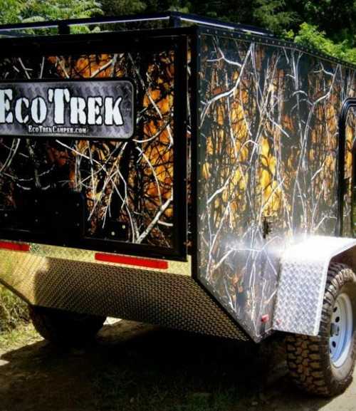 EcoTrek 510 представляет собой легкий кемпер прицеп, вес которого очень и очень маленький. Он составляет всего 600 килограмм в загруженном режиме, а без мебели и бытовой техники — 498 кг(или 1100 фунтов). Его простоватый и от части грубый внешний вид словно придает ему характер агрессивного животного, рвущегося на природу.