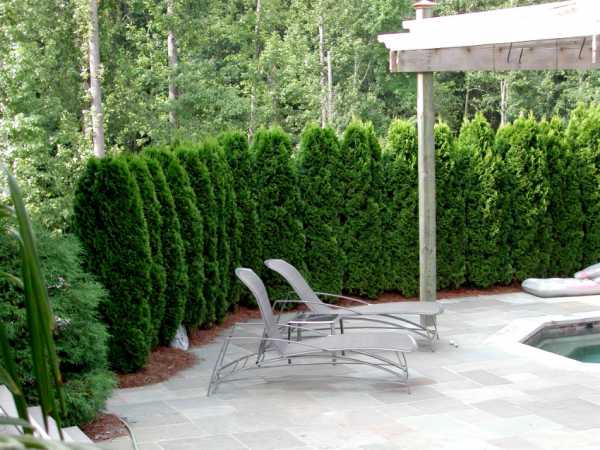 Хвойные деревья будут служить отличной изгородью в любое время года