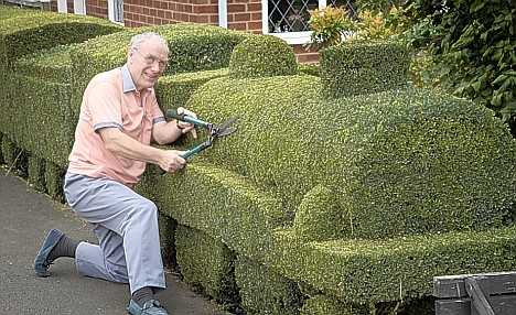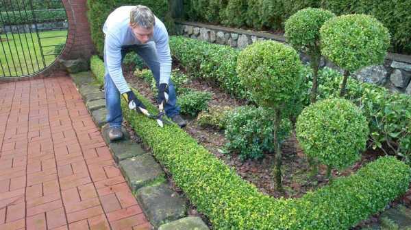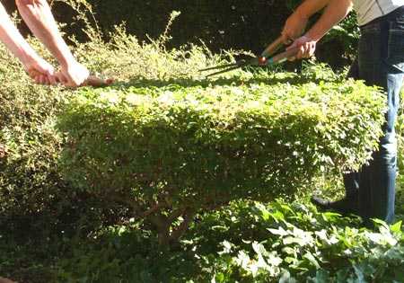 Процесс стрижки изгороди