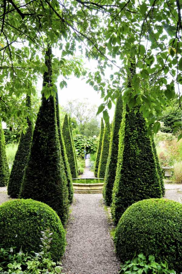 Кроны самшита легко поддаются стрижке и созданию разнообразных геометрических форм