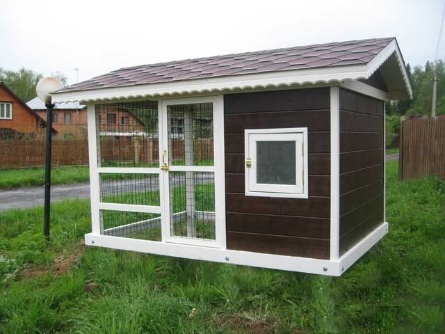 В конструкции курятника обычно предусматривается зона выгула — вольера, которую огораживают сеткой. Желательно, чтобы весь вольер или его часть были оборудованы крышей, под которой куры смогут спрятаться в тени от жаркого солнца либо от дождя.
