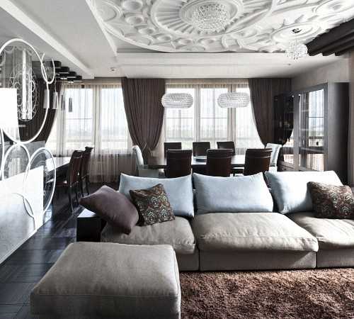 Гостиная, столовая и кухня в одном пространстве