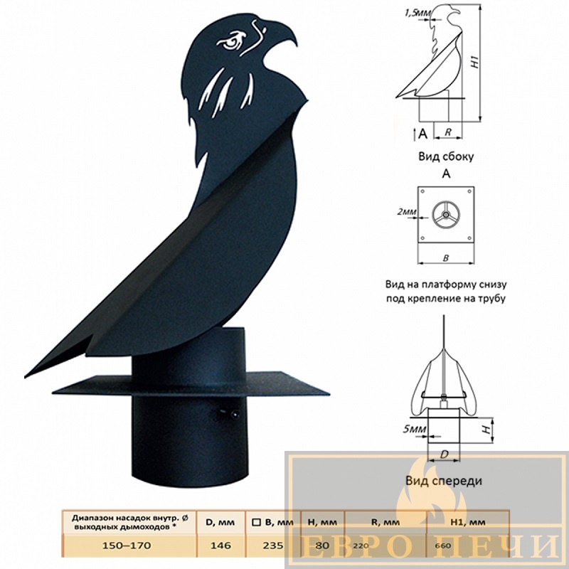 Флюгарка – зачастую это декорационный элемент, в виде птицы или дракона. Флюгарка устроена таким образом, что имеет вращающий элемент, то есть крутится от потоков ветра. Основное её предназначение усиление вывода воздуха из дымохода, то есть увеличение тяги.