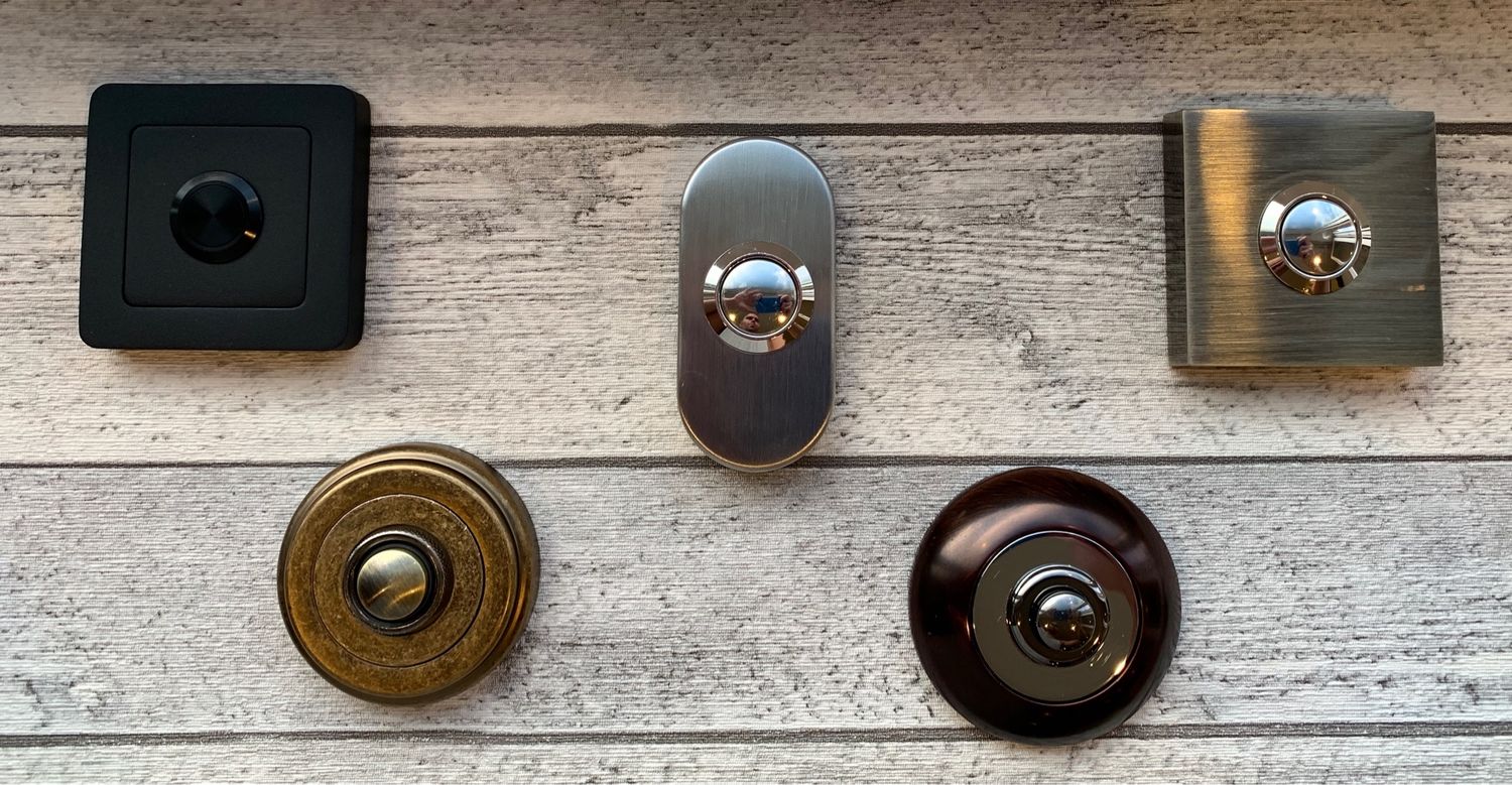 - Кнопки дверного звонка – эта категория делится на две подкатегории… кнопки проводного дверного звонка и кнопки беспроводного дверного звонка. Кнопки проводного дверного звонка работают с проводной системой дверного звонка, а беспроводные кнопки работают с беспроводными звонками продуктов.