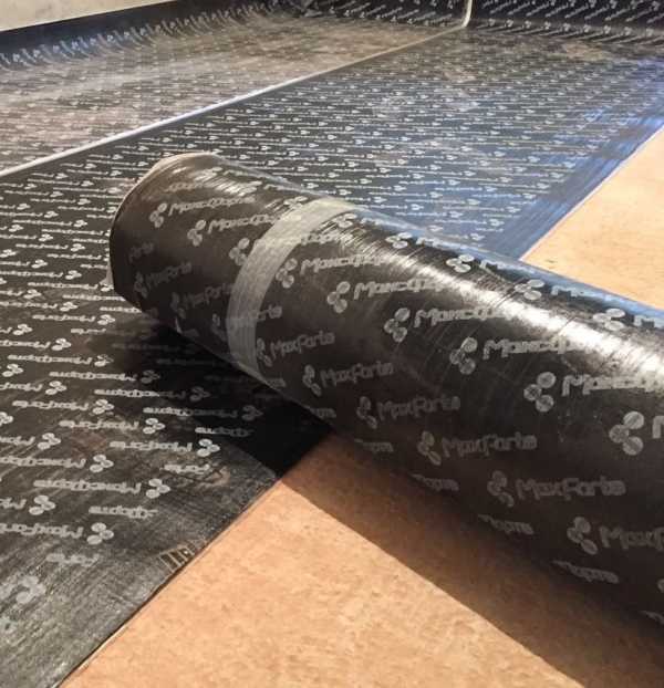 Рулоны расстилают мягкой стороной на пол, края заводят на стены. После работы все излишки можно легко срезать. Стыки между рулонами промазывают жидкой резиной МаксФорте Гидростоп.