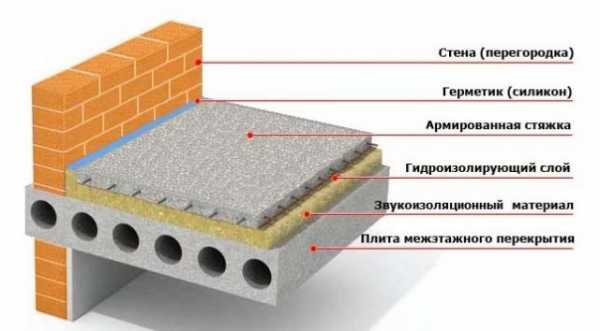- “Плавающий” – такой способ применяется только для звукоизоляции пола. Изолирующий материал расстилается на пол и покрывается гидроизолирующим слоем. Сверху делается армированная стяжка и устанавливается половое покрытие. Преимущество данного способа, в отсутствии жёстких креплений, что способствует значительному снижению вибрационного шума.