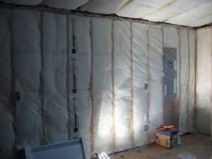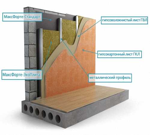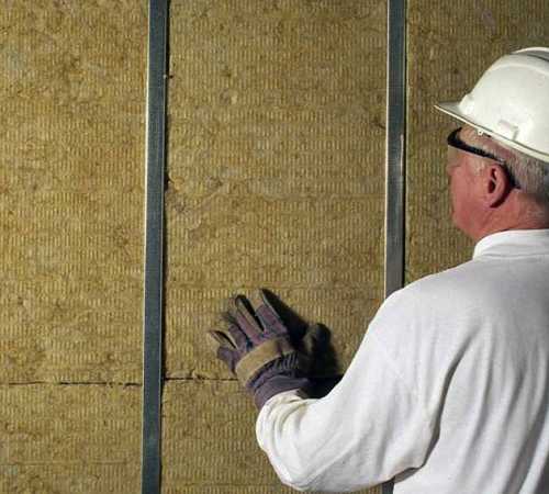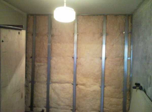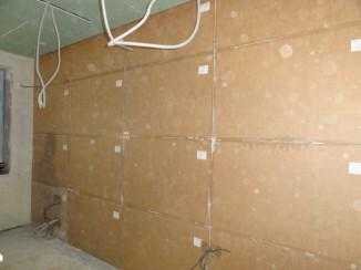 - Для заполнения пространства между гипсокартоном и стеной применяют плиты из минеральной ваты (толщина 5 см) или материал из хлопкового волокна.