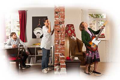 - Π¨ΡΠΌ ΠΈΠ· ΡΠΌΠ΅ΠΆΠ½ΡΡ ΠΊΠ²Π°ΡΡΠΈΡ β ΠΏΠΎΡΡΡΠΏΠ°Π΅Ρ ΡΠ΅ΡΠ΅Π· ΡΡΠ΅Π½Ρ, ΡΠΊΠ²ΠΎΠ·Π½ΡΠ΅ ΡΠΎΠ·Π΅ΡΠΊΠΈ ΠΈ ΡΠ΅Π»ΠΈ ΠΌΠ΅ΠΆΠ΄Ρ ΠΏΠ»ΠΈΡΠ°ΠΌΠΈ ΠΏΠ΅ΡΠ΅ΠΊΡΡΡΠΈΡ. Π¨ΡΠΌ ΠΎΡ ΡΠΎΡΠ΅Π΄Π΅ΠΉ, ΡΠ²Π»ΡΠ΅ΡΡΡ ΡΠ°ΠΌΠΎΠΉ ΡΠ°ΡΡΠΎΠΉ ΠΏΡΠΈΡΠΈΠ½ΠΎΠΉ ΠΆΠ΅Π»Π°Π½ΠΈΡ ΠΏΡΠΎΠΈΠ·Π²Π΅ΡΡΠΈ Π·Π²ΡΠΊΠΎΠΈΠ·ΠΎΠ»ΡΡΠΈΡ ΠΊΠ²Π°ΡΡΠΈΡΡ. ΠΡΠ»ΠΈ ΠΈΡΡΠΎΡΠ½ΠΈΠΊ ΠΏΠΎΡΡΠΎΡΠ½Π½ΠΎΠ³ΠΎ ΡΠ°Π·Π΄ΡΠ°ΠΆΠ°ΡΡΠ΅Π³ΠΎ ΡΡΠΌΠ° ΠΎΠ΄ΠΈΠ½, ΡΠΎ Π΄ΠΎΡΡΠ°ΡΠΎΡΠ½ΠΎ ΠΏΡΠΎΠΈΠ·Π²Π΅ΡΡΠΈ Π·Π²ΡΠΊΠΎΠΈΠ·ΠΎΠ»ΡΡΠΈΡ ΡΠΌΠ΅ΠΆΠ½ΡΡ Ρ ΠΈΡΡΠΎΡΠ½ΠΈΠΊΠΎΠΌ ΡΡΠ΅Π½. ΠΡΠ»ΠΈ ΠΆΠ΅ Π²Π°ΠΌ Π½Π΅ ΠΏΠΎΠ²Π΅Π·Π»ΠΎ, ΠΈ ΡΡΠΌΠ½ΡΠ΅ ΡΠΎΡΠ΅Π΄ΠΈ ΠΎΠΊΡΡΠΆΠ°ΡΡ Π²Π°Ρ ΡΠΎ Π²ΡΠ΅Ρ ΡΡΠΎΡΠΎΠ½, ΡΠΎ Π² ΡΡΠΎΠΌ ΡΠ»ΡΡΠ°ΠΈ, ΠΏΡΠΈΠ΄ΡΡΡΡ Π΄Π΅Π»Π°ΡΡ ΠΏΠΎΠ»Π½ΡΡ Π·Π²ΡΠΊΠΎΠΈΠ·ΠΎΠ»ΡΡΠΈΡ ΠΊΠ²Π°ΡΡΠΈΡΡ.